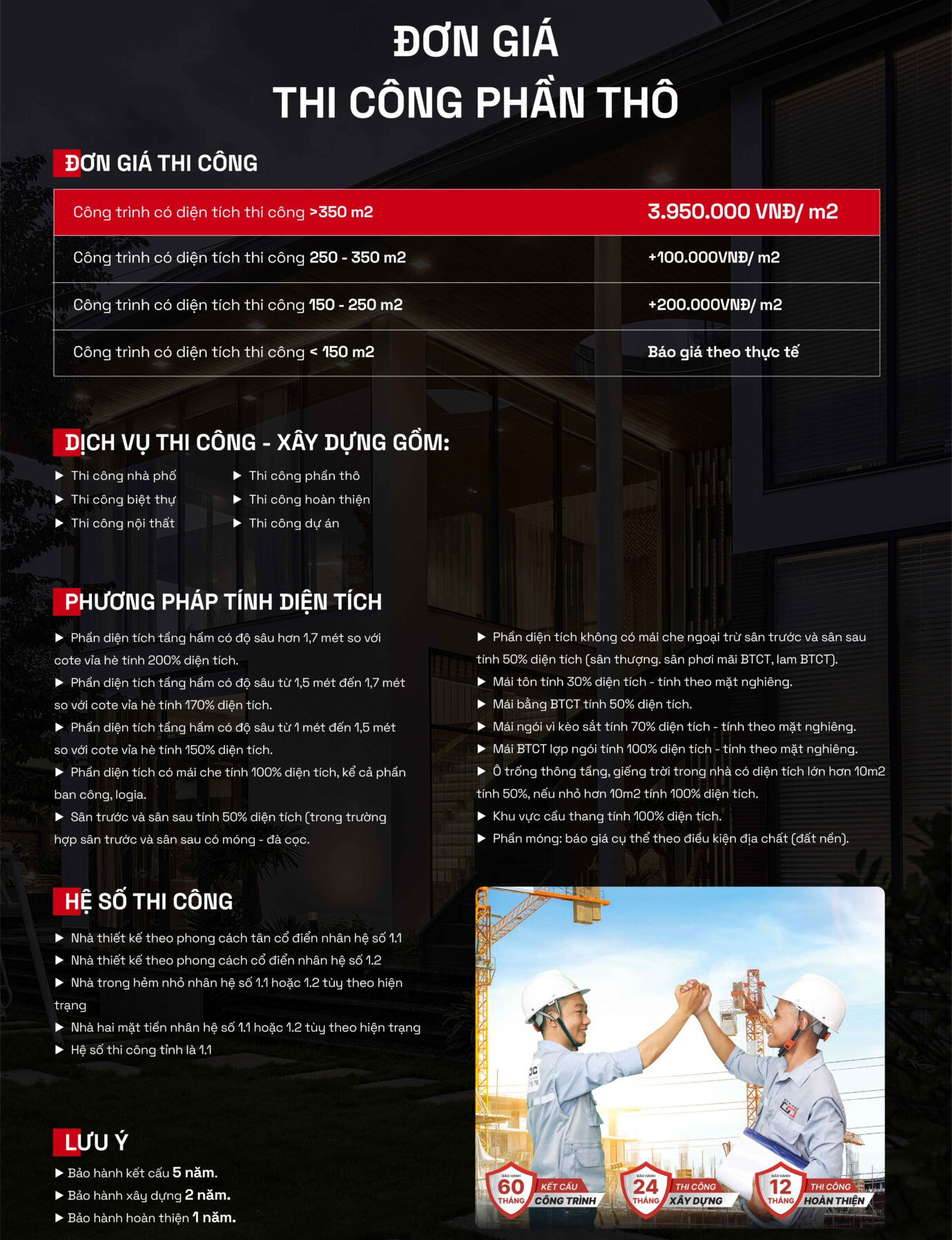 Bảng giá xây dựng phần thô mới nhất