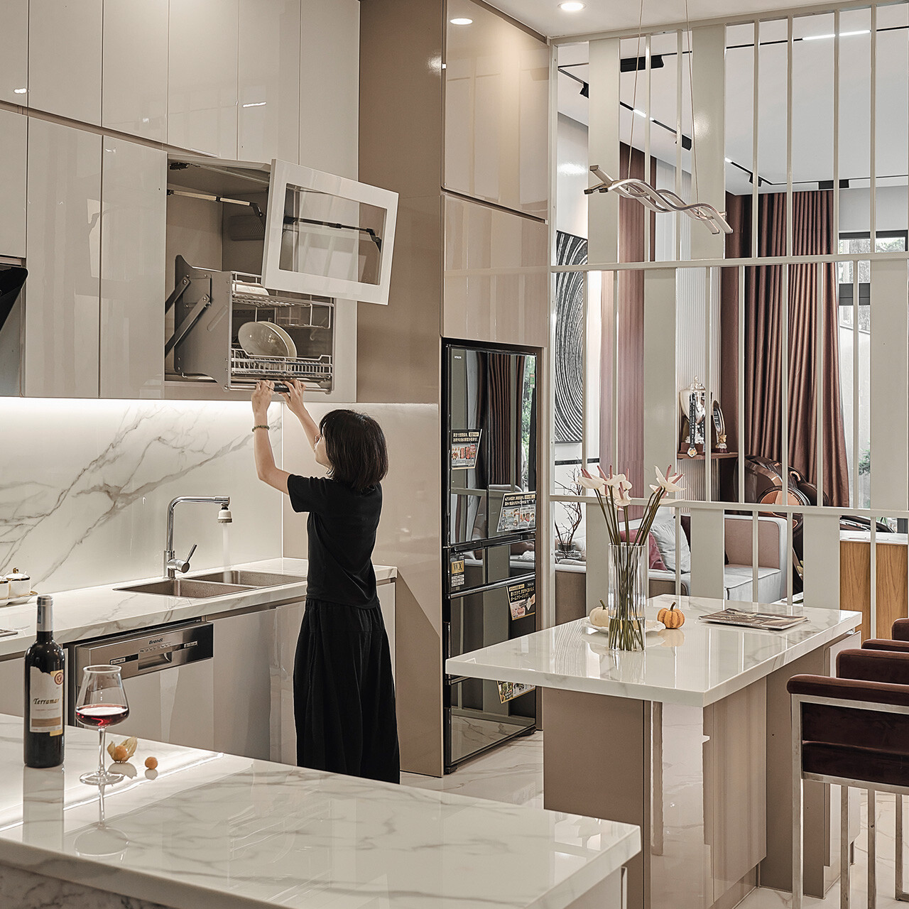 - Gia tăng công năng: Tách riêng khu vực sinh hoạt như bếp – phòng khách, phòng ngủ – góc làm việc,… giúp không gian vận hành linh hoạt hơn.
